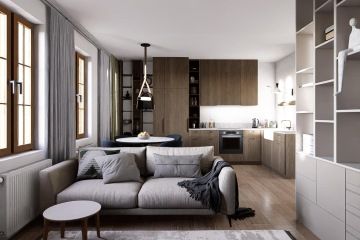 Bytová jednotka 1+kk s výměrou 44,3 m² se nachází ve 2. nadzemním podlaží, a je orientovaná směrem k náměstí. V bytě je k dispozici předsíň, obývací pokoj s kuchyňským koutem a koupelna s WC. Dále k bytu náleží sklep (3,3 m²) v 1. podzemním podlaží domu. Koupelna se sprchovým koutem bude mít keramické obklady do výšky stropu v odstínu šedý beton, dlažba na podlaze tmavý odstín betonu. Vytápění jednotky bude řešeno elektrokotlem Bosch s úsporným režimem, otopná tělesa plechová s termostatickou hlavicí budou zavěšena pod okny. Ohřev teplé vody zajistí nástěnný bojler v koupelně.